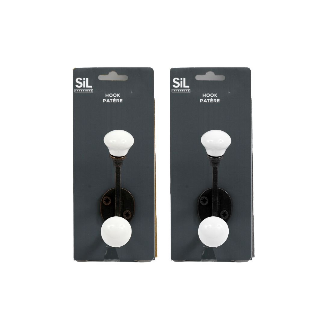 WHITE CERAMIC & METAL DOUBLE HOOK