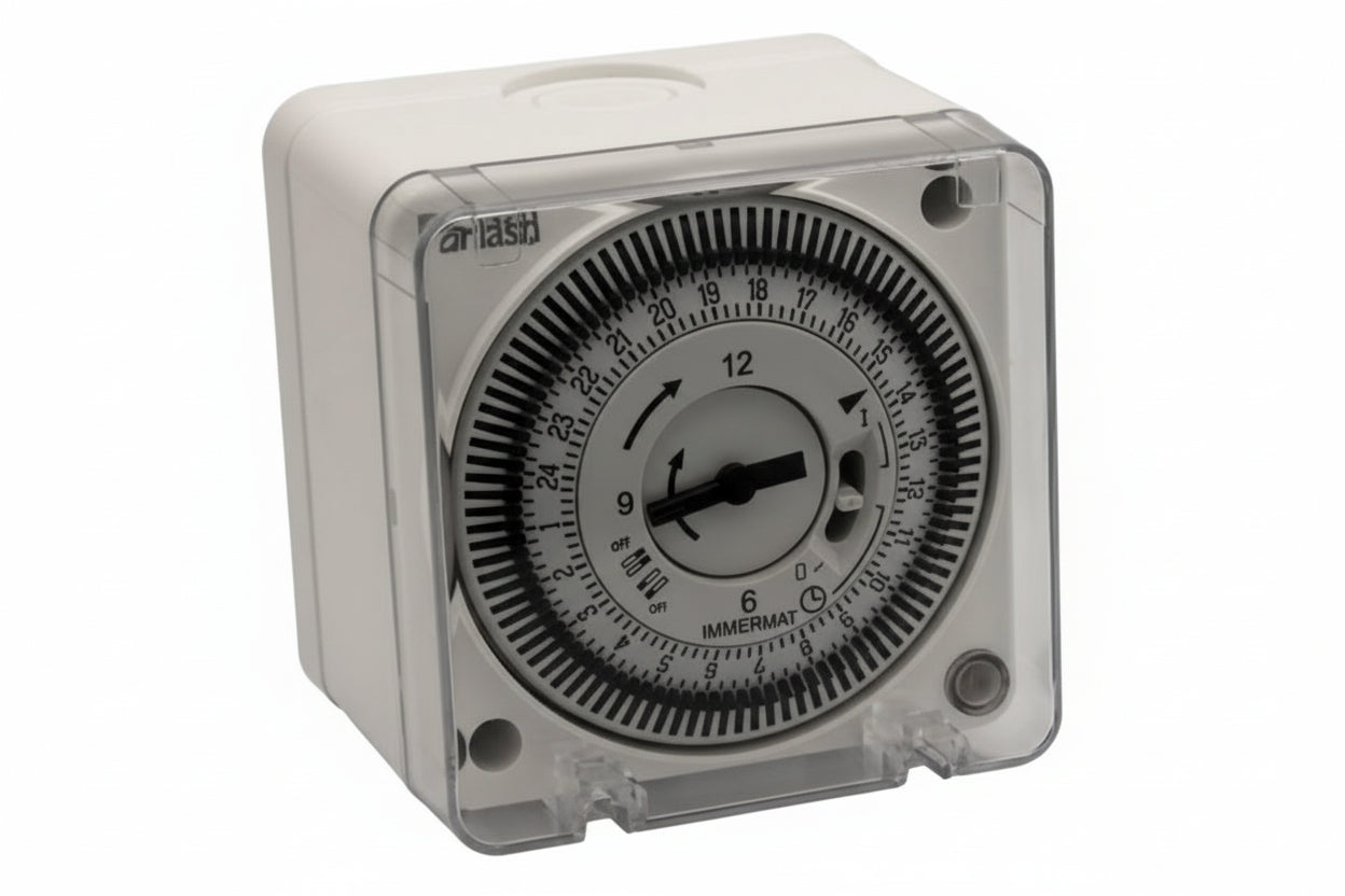 The Flash 31110/2 24 Hour Immersion Time Clock offers effortless scheduling with 15 minute on/off cycles and 96 daily switching options. It includes a universal adapter plate and a plug-in clock mechanism to ensure easy compatibility and replacement in domestic systems.