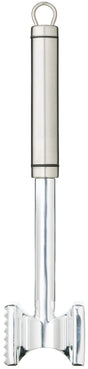 Say goodbye to tough steaks and chewy chops with the KitchenCraft Professional Meat Tenderiser. This simple, sturdy tool transforms meat and poultry into tender, delicious bites. It's double-sided design features a spiked side to break down fibers and a flat side to pound cutlets, schnitzel, and escalopes thinner and wider. Made with a lightweight aluminium head and a durable stainless steel handle, it’s strong, comfortable, and stylish, perfect for any chef.