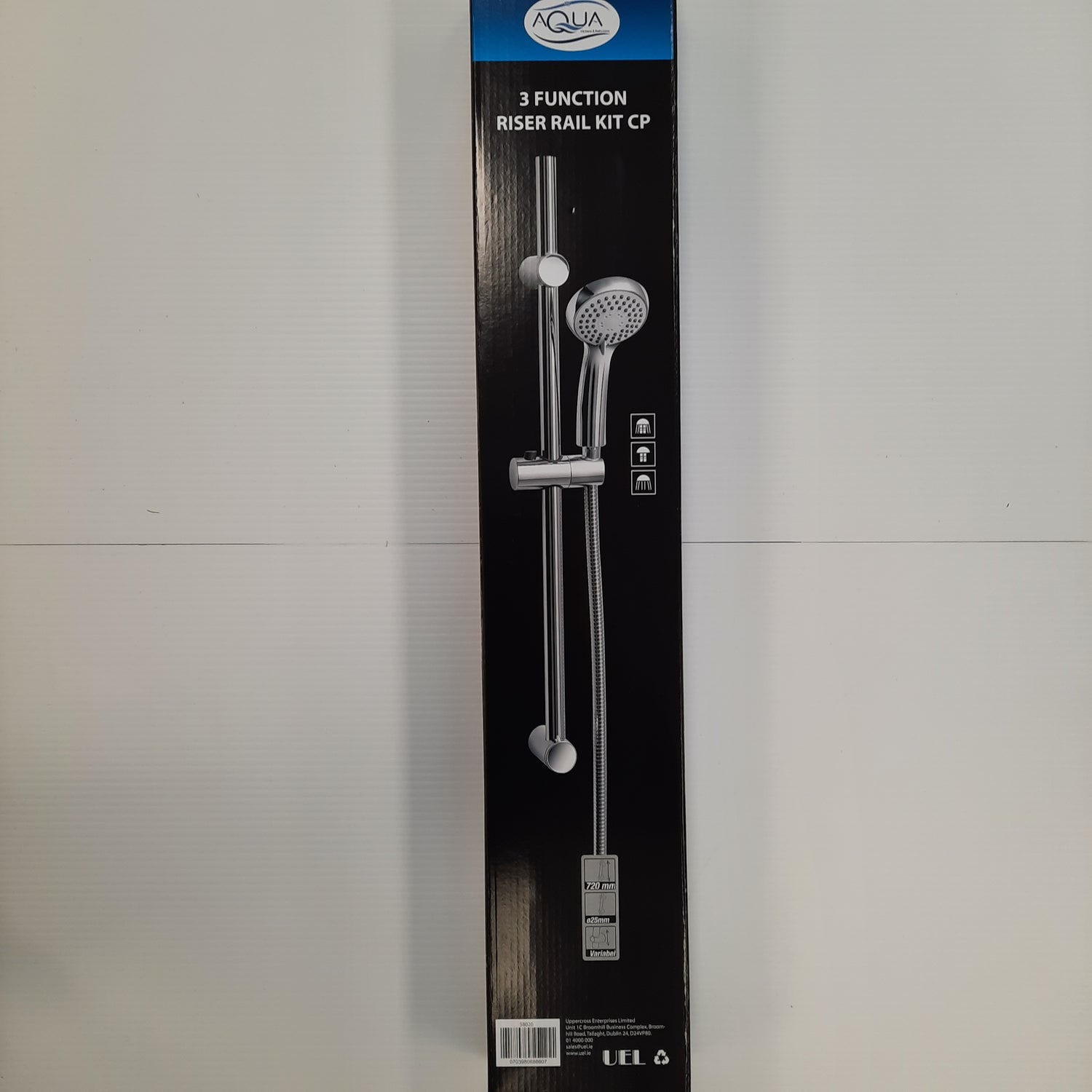 This Aqua Kitchens & Bathrooms 3 Function Riser Rail Kit comes in a polished chrome finish. This kit features a 1.5 metre shower hose, shower head which has three spray settings, a rail which is 25mm in diameter, an adjustable shower head holder, two brackets to fix to the wall and the lower bracket is adjustable to a maximum length of 720mm.